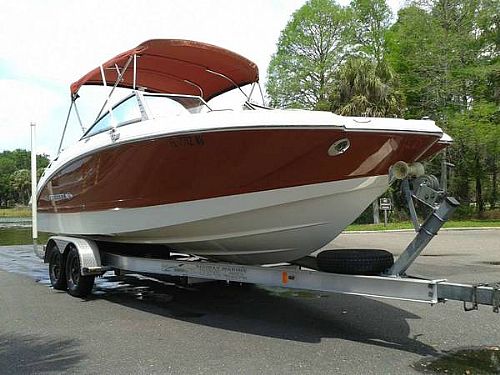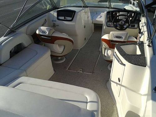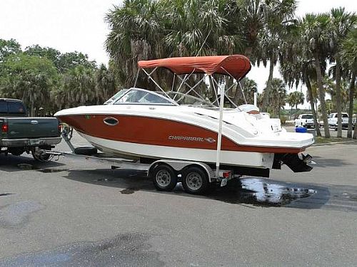 It is powered by a 260 HP 5.0L Mercruiser MPI. It comes equipped with a ship to shore radio, Chaparral's Wide Tech Design, rear facing bench seat, tilt wheel, dual axle trailer, new canvas storage covers, iPod docking station and head. Lots of room on this boat!! The interior is in excellent condition!! Extras like front boarding ladder, front and rear fresh water wash downs for boarding, stainless recessed navigation lamps, stereo with satellite, CD, MP3 with swim platform and midship external controls. Sink midship with changing room privacy area integrated coolers.