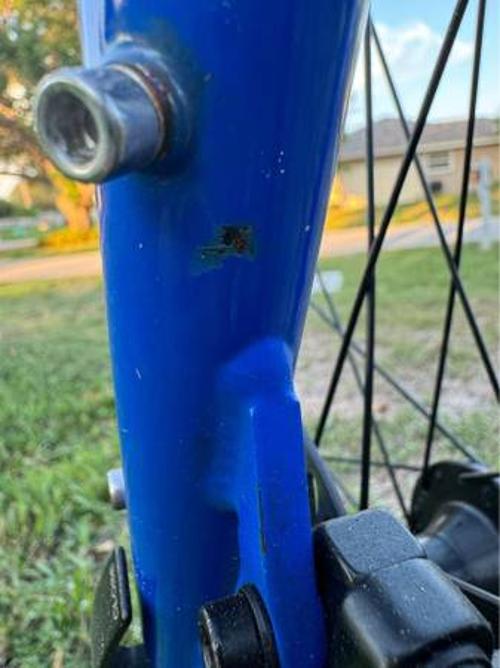 A little patina on the spokes, but would clean up nicely. The frame has a few small blemishes, but nothing major. Overall, this is a nice bike with a beautiful color. I have too many others sitting ahead of this one.
