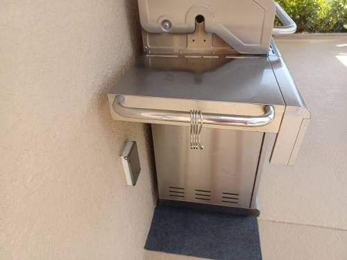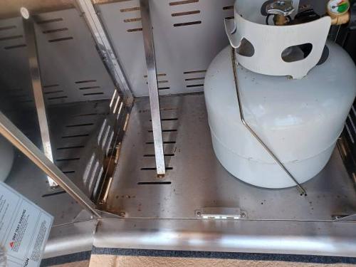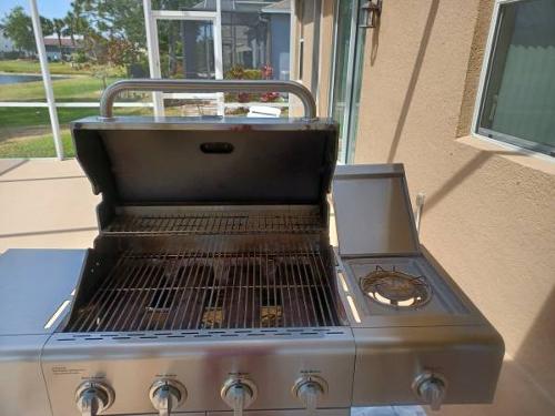 - Kenmore PG-40405S0LA Stainless Steel 4 Burner Outdoor Patio Gas BBQ Propane Grill with Side Burner in, Stainless Steel. 5-burner, total 53,000 BTU/Electronic ignition system Electronic ignition system/27 in. x 17 in. firebox Total cooking area 621 sq. In./side handle with hook, warming rack. MULTIPLE BURNER GAS BBQ: 4 main burners made of stainless-steel tube. Each carries 10, 000 BTU. Includes one 13, 000 BTU side burner. Total BTU is 53, 000 GRILL SIZE: Total cooking surface of 606 square inches. Primary cooking surface of 432 square inches and secondary cooking surface of 174 square inches. QUALITY CONSTRUCTION: Equipped with the following features this grill is sure to last: Fully welded stainless-steel lid & full aluminized steel liner, solid 6mm stainless steel cooking grates, stainless steel warming rack, two stainless steel doors with stainless steel liner, full stainless steel side panels & stainless-steel bottom panel and aluminum grease box. MOBILE: Easily moveable with 4-3” rolling casters. 2 casters have brakes. EASY TO START: Electronic ignition makes starting this grill as easy as pushing a button with individualized ignition system. Includes two gas tanks. It does have a few pitted spots, but nothing major. Works great! $200.00 Firm, Cash Only.