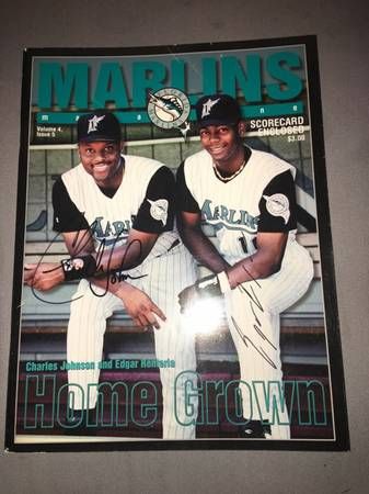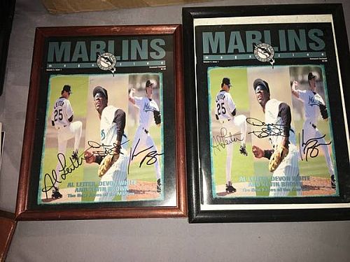 - I inherited a nice size collection of nice Florida Marlins autographed memorabilia I have a couple calenders with a signature from every player in it on every single page. This post only allows 24 pictures so I cannot post those here but I will post a seperate listing just for that. I have about 30 magazines signed by the players on the covers. Some are framed. Some are Triple autos and dual autos. I have some autographed bats that were used by the players. They were the players actual bats, some given by the player. I have several hats signed with one to multiple signatures on each hat. I have several special edition autographs. None of them come with certificates but my family use to go to almost every games after 1993 for a few years and these autographs and items were obtained in person 100% guaranteed by them. Willing to barter. No lowball offers