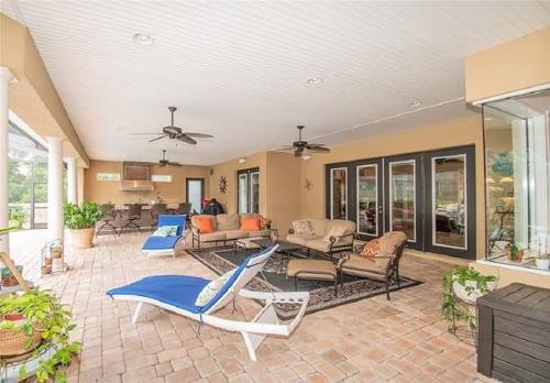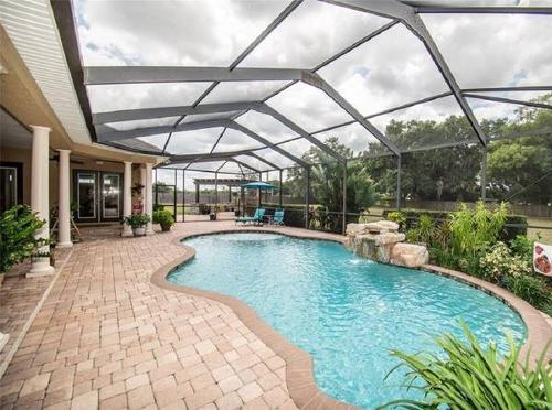You will have plenty of covered space with ceiling fans to enjoy this sitting area, new outdoor beverage cooler and outdoor dining. Extra privacy with this screen enclosed pool, outdoor kitchen, table, chairs, sun loungers and sun umbrellas available are perfect for entertaining or simply lounging and gathering with family and friends. The pool deck has sun chairs and is completely screened-in keeping all the Florida bugs away!