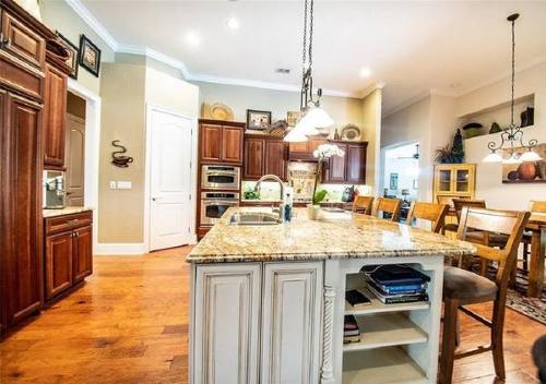 The rear of the home features an outdoor entertaining area with and oversized lanai with heated pool, outdoor summer kitchen and screen enclosure is perfect for outdoor dining and entertaining.
