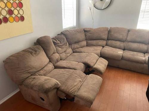 - Free sectional sofa Two reclining chairs, one sofa bed, cup holder.
