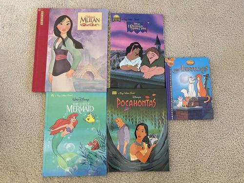 The 5 other books are different Disney versions A couple of notable books are: Disney Villians A Pop-Up Book (1995) by Disney Press where each page has a unique pop-up display Mulan (1998) by Disney Press with an embossed fabric spine