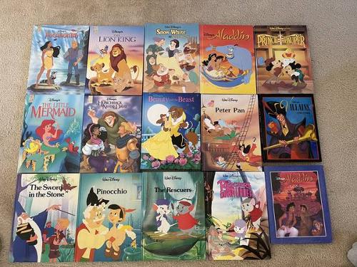 There are 13 books from the Twin Books/Mouse Works series: Pocahontas The Lion King Snow White and the Seven Dwarves Aladdin The Little Mermaid The Hunchback of Notre Dame Beauty and the Beast Peter Pan The Sword in the Stone Pinocchio The Rescuers