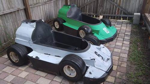 - 2 Formula Style gokart bodies from an amusement park. BODIES ONLY NO FRAMES, ETC.. Made of heavy plastic, very sturdy and durable. In the last picture, I put a few golf cart wheels next to them so you could visualize how cool these will be on go kart frames. ?? Asking $50 for BOTH ! Or Best Offer
